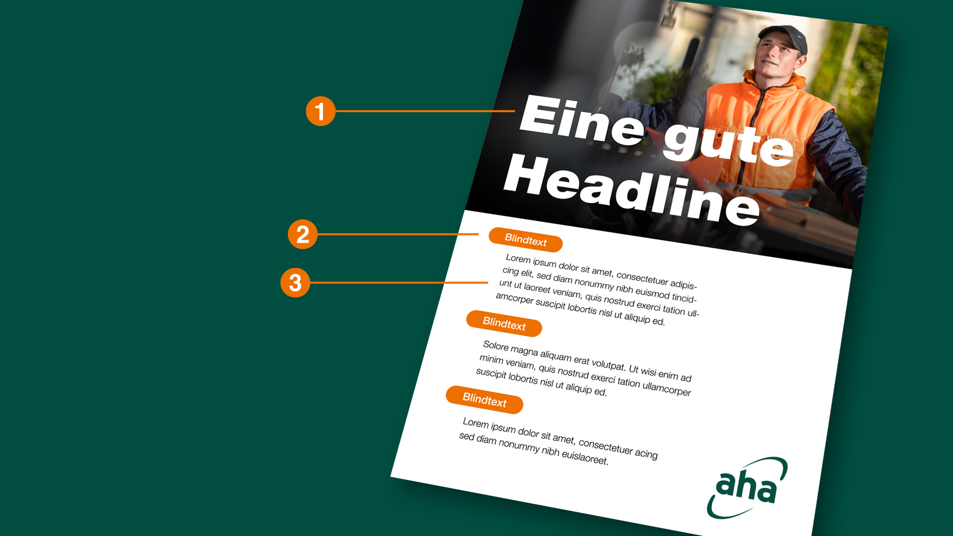 Wir bevorzugen den linksbündig horizontalen Flattersatz. Dabei soll ein deutlicher Abstand zwischen Text und Seitenrand eingehalten werden.